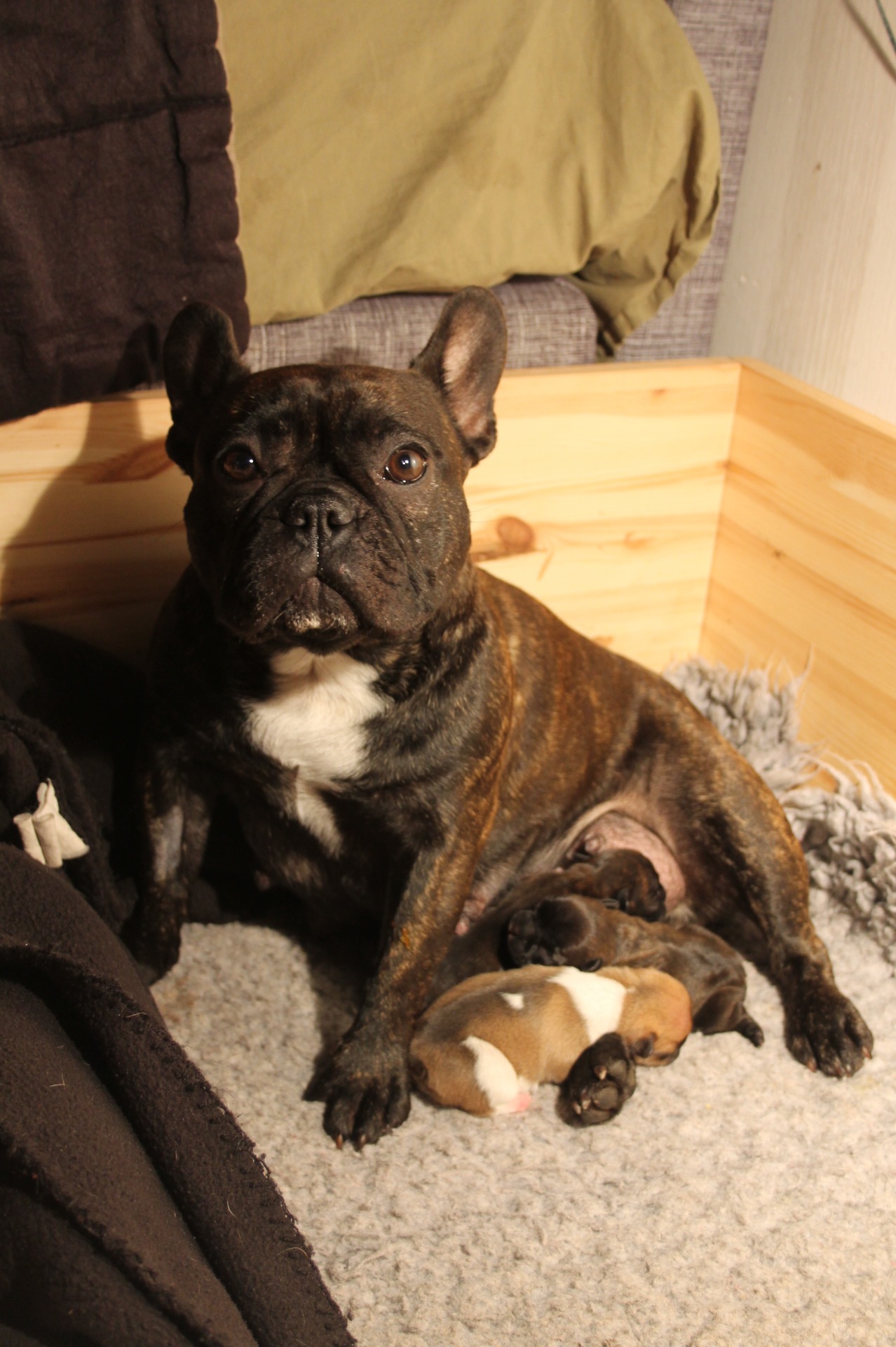 EILEN AAMUYÖLLÄ BELLA (VENICE STAR BELLA RAGAZZA ANGELINA) SYNNYTTI MEILLE LUOMUNA NELJÄ KAUNISTA PENTUA. YHDEN BRINDLE POJAN JA KOLME PIED TYTTÖÄ. ÄITI HOITAA PENTUJA TODELLA HIENOSTI JA KAIKKI ON PENTULASSA HYVIN.